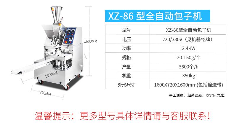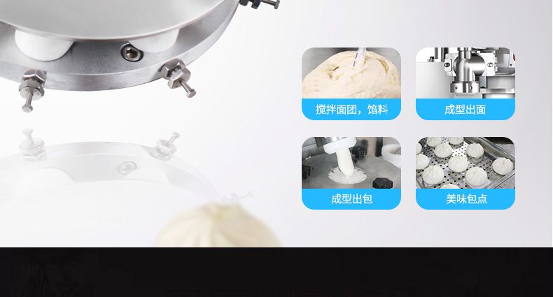 ◆ 工作效率相當于8到12個工人同時手工制作包子,真正的低投入、高收效,節(jié)省投資。