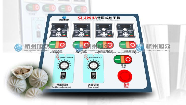 XZ-290IIA卷面式包子機(jī)是以壓面方式成型面皮,卷面方式包餡,仿手工捏花的一款機(jī)型,它整合了原有的二道壓面、成型機(jī)、出餡機(jī)為一體,可直接調(diào)整面皮的厚度、餡料的多少。