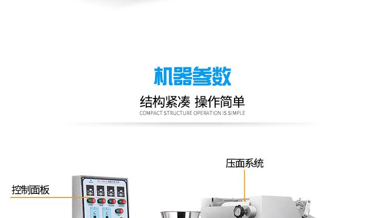 ◆壓面、成型、出餡一體化,操作簡單方便,生產(chǎn)效率高,占地面積小。