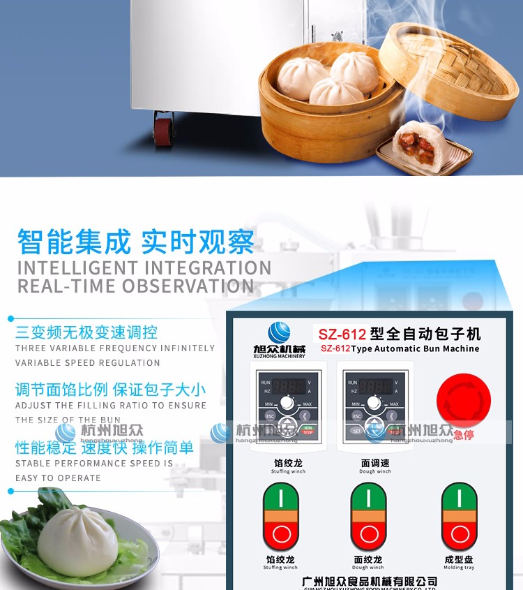 SZ-612型全自動包子機是一款設計先進,結構簡單,操作方便,生產(chǎn)性能穩(wěn)定的設備。其體積小重量輕,外殼主要部件采用不銹鋼制作,外觀精美。