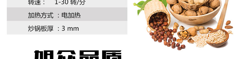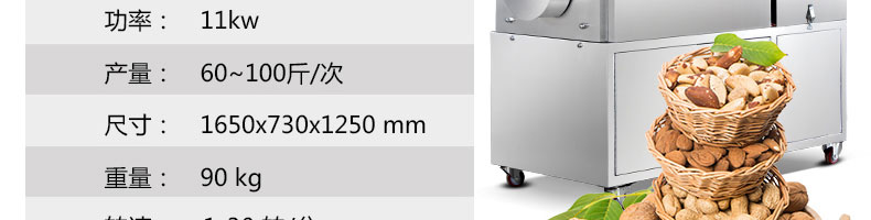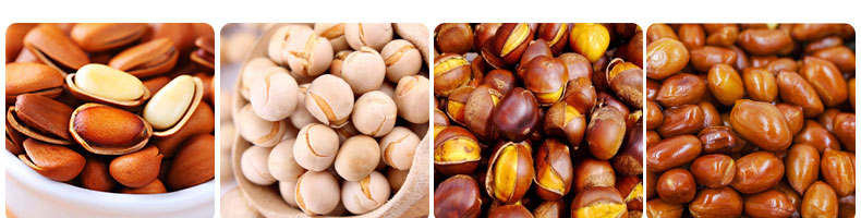 8.適合加工各種干果和堅(jiān)果類,如;板栗、花生、瓜子、松籽、榛子、杏仁、菜籽、咖啡豆、紅棗、芝麻、、核桃、各種豆類、麥類、米類等。適用于在食品加工廠、農(nóng)貿(mào)市場、食品專賣店、連鎖店等處定點(diǎn)加工和經(jīng)營,符合生產(chǎn)、創(chuàng)業(yè)致富的需要。