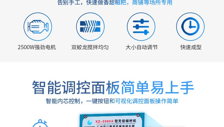XZ-5000A型無餡糍粑機(jī),可生產(chǎn)糯米糍粑、蛋酥糍粑、酥糖糍粑、板栗糍粑、黃豆糍粑、麥香糍粑等各種無餡糍粑制品。適用于商場、超市、酒店、影劇院、學(xué)校、圖書城、游樂園、旅游景點(diǎn)等各種場所。免費(fèi)提供工藝技術(shù)。免費(fèi)上門培訓(xùn)指導(dǎo)安裝。