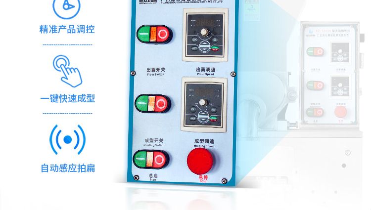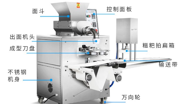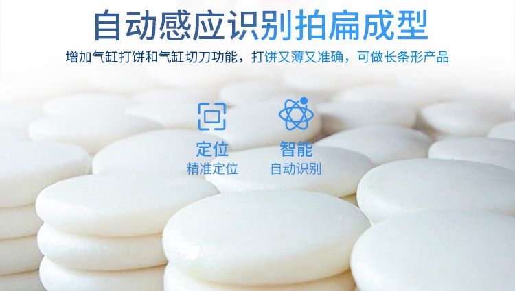 ?增設(shè)氣缸打餅功能和氣缸切刀功能,打餅薄又準(zhǔn)確,可做長條形產(chǎn)品;