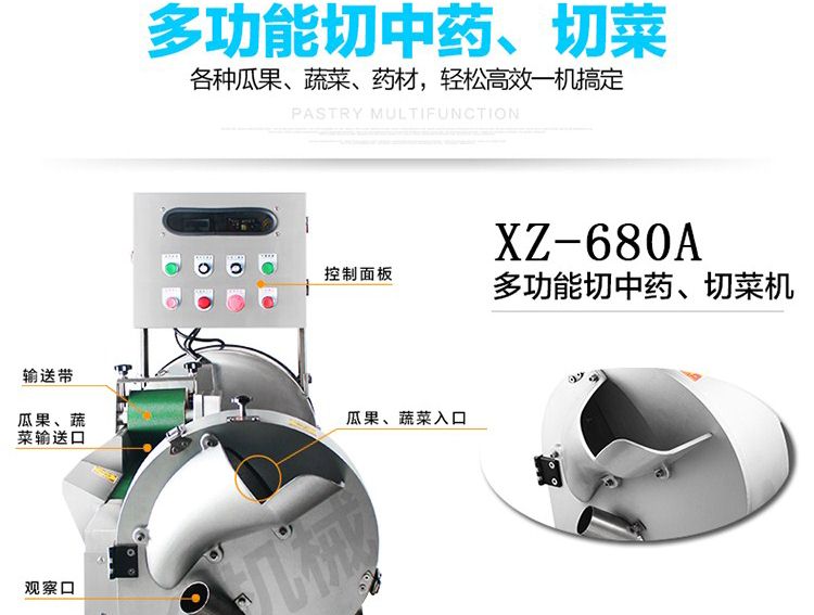 XZ-680A多功能切菜機(jī),一機(jī)多用,可切葉菜及根莖類蔬菜,并可切片、絲、條、丁、段,碎等,切菜規(guī)格可根據(jù)不同需要調(diào)節(jié)尺寸,方便快捷。隨機(jī)共配送三套刀具。