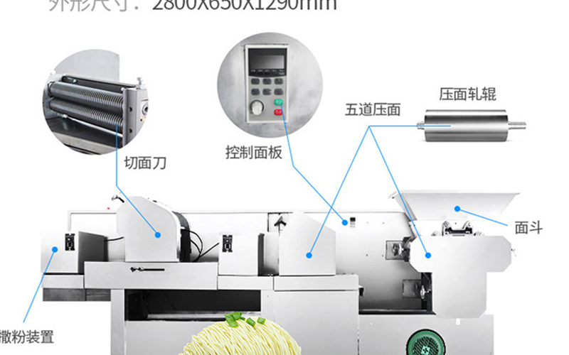 XZ面條機(掛面/濕面),XZ5-260自動折皮,雙面撒粉,卷皮,切面,本機配有三個變頻器控制,增強了可操作性,三個減速電機驅動,動力強勁。