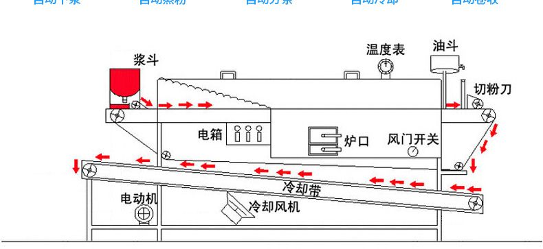 ◆全自動(dòng)化:具有自動(dòng)下漿、蒸粉、分條、冷卻和(收粉)功能;