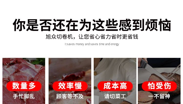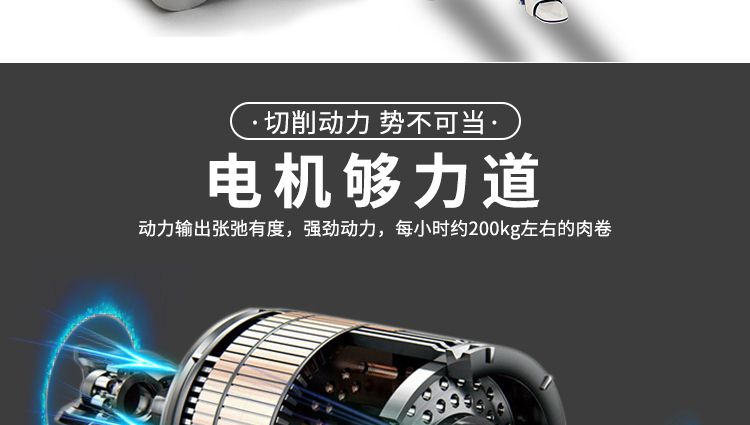 4.自動化程度高,肉片切制,厚度調(diào)節(jié)。肉卷輸送,自動停機(jī)。均可一鍵完成,省工省時