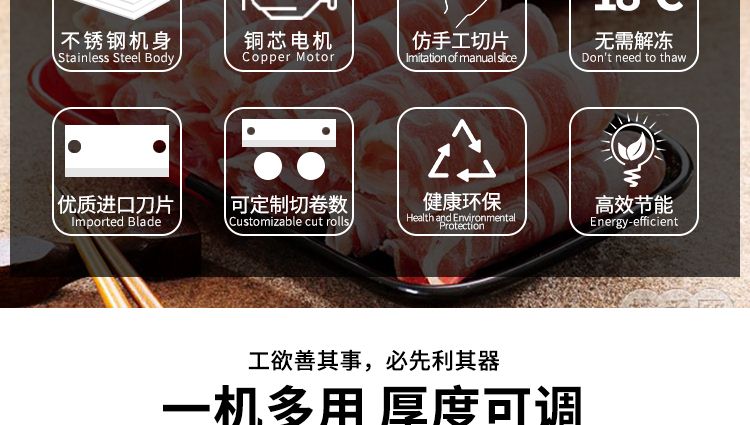 1.不用解凍,-18度的肉卷上機(jī)即可切片,肉片不碎且成型美觀