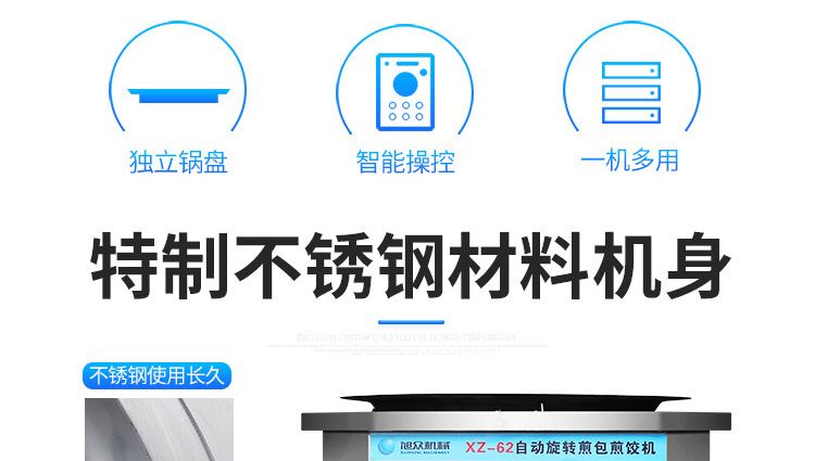 JGB-62型自動(dòng)旋轉(zhuǎn)煎包煎餃機(jī),能夠有效的防止餃子/包子燒焦,使每個(gè)餃子/包子受熱均勻等功能;外殼均由不銹鋼制造,外觀精美耐用,機(jī)器使用燃?xì)狻?/p>