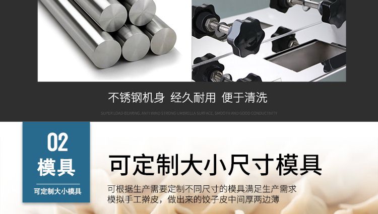 本機(jī)具有高效節(jié)能、安全衛(wèi)生、無邊角廢料、大小厚薄可定制等優(yōu)點(diǎn),使所生產(chǎn)餃子皮在外觀、口感、重量達(dá)到空間統(tǒng)一,從而轉(zhuǎn)變了當(dāng)今生產(chǎn)效率低、員工揮霍、二次污染、中部缺口等現(xiàn)狀,該仿手工餃子皮機(jī)除具有以上優(yōu)點(diǎn)外,還可依據(jù)生產(chǎn)必要轉(zhuǎn)變出皮速度等優(yōu)點(diǎn)。