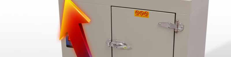 本品工作室下部裝有發(fā)熱絲,左側(cè)裝有鼓風(fēng)裝置,溫度控制儀控制溫度恒定及高低,工作時(shí)空氣由箱底進(jìn)氣孔流進(jìn),經(jīng)發(fā)熱絲加熱再經(jīng)鼓風(fēng)裝置流入工作室,再由箱頂排氣孔排出。本品工作室與外殼之間有玻璃纖維做保溫材料,外殼用鋼板制成。