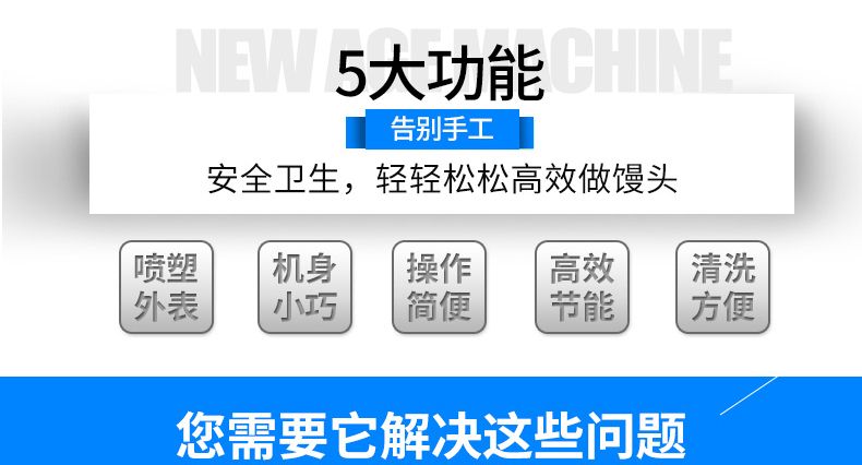 ☆ 外型美觀,質(zhì)量可靠。制作饅頭原料采用發(fā)酵面,所制的饅頭大小均勻,饅頭質(zhì)量好,表面光滑。