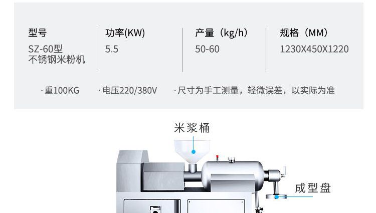 SZ-60不銹鋼米粉機(jī),可生產(chǎn)米粉、米線、桂林米粉、過橋米線、年糕、糍粑等產(chǎn)品。各種形狀都可生產(chǎn)(圓、扁),加工食品外表光滑,厚薄、寬窄、粗細(xì)均勻可調(diào),筋軟適度,有彈性,口感柔軟、味道純正。