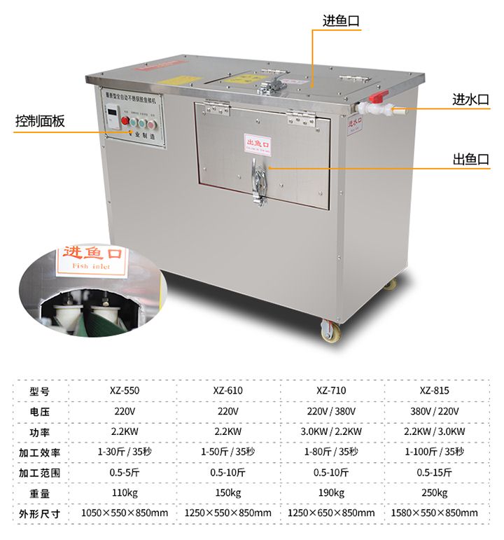 3.功能強大,直接實現(xiàn)去魚鱗和殺魚的工藝,生產效率高,產量大。