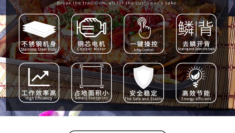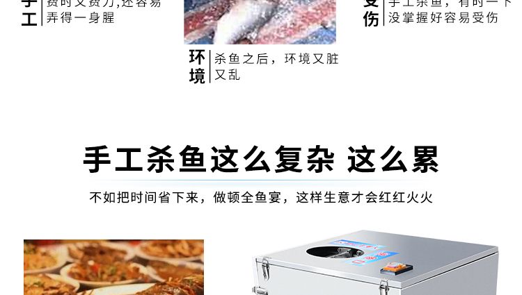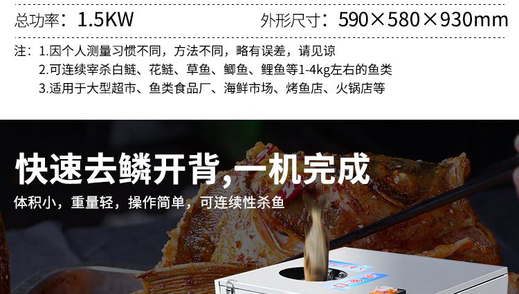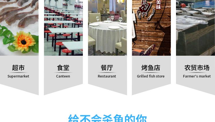 本設(shè)備為魚類食品加工廠,大型超市,機關(guān)食堂,海鮮市場,農(nóng)貿(mào)市場,烤魚店,酸菜魚店,火鍋店等餐飲酒店帶來高工作效率。
