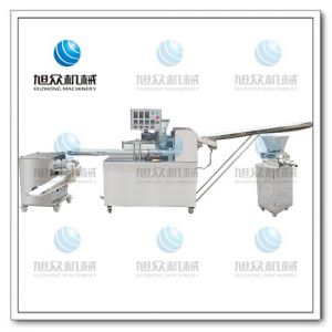 旭眾牌SZ-09A多功能單段酥餅機(jī)是經(jīng)面輪將面皮壓成合適厚度,由自動(dòng)出餡機(jī)將餡料充填至面皮上,經(jīng)卷面輪將面皮卷成圓柱狀,后以成型刀具切割成球狀,或是長(zhǎng)條狀餅胚,再經(jīng)過(guò)打餅成形,整個(gè)成形過(guò)程不會(huì)破壞面皮筋性。