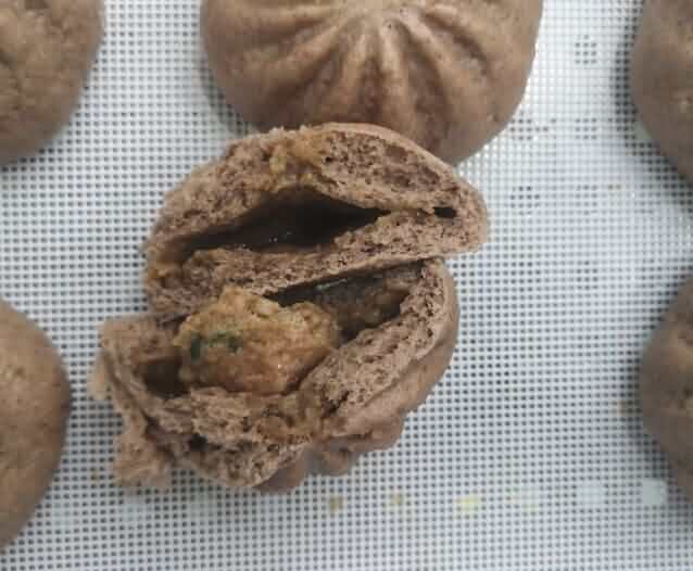 SZ-63包子機升級后SZ-612包子機,那么兩者之間區(qū)別在哪里,花紋從九褶變成十二褶,客戶現(xiàn)場試機SZ-612包子機做黑米包效果如圖: