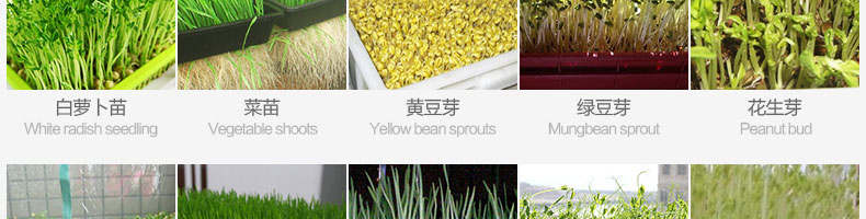 旭眾芽苗機(jī)系列是把芽苗生長過程中控制在恒溫、恒濕環(huán)境中生長,只要有水有電就可以,它會自動進(jìn)水停水,并加熱到設(shè)定值時會自動定時淋水,箱體溫度與空氣溫度都可以自動調(diào)節(jié),人只需把泡好的豆種放入機(jī)器內(nèi)和取出成熟的豆芽。