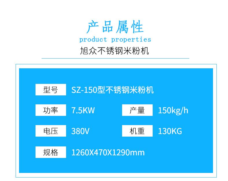 名稱SZ-150不銹鋼米粉機(jī) 電源380V 功率7.5kw 產(chǎn)量150kg/h 尺寸1260×470×1290mm 重量130kg 規(guī)格 其他