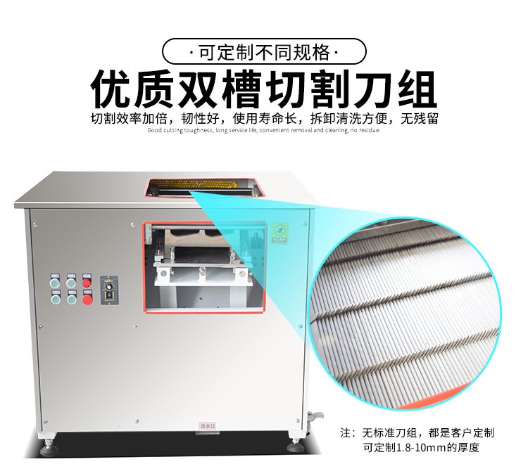 本機(jī)外形美觀、操作簡單、效率高、耗電小、清潔保養(yǎng)容易、安全衛(wèi)生、切肉效果好等優(yōu)點(diǎn),切鮮魚機(jī)器其造型美觀、結(jié)構(gòu)緊湊、堅(jiān)固耐用,切魚片機(jī)器價格實(shí)惠是賓館、酒家、食堂、肉類加工場等單位所不可缺少的肉類加工機(jī)械